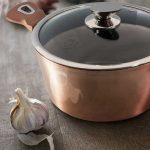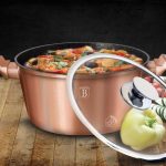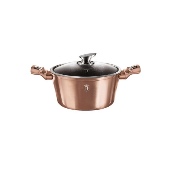 Kozica s pokrovom je izdelana iz kovanega aluminija z 3-slojno marmorno prevleko proti prijemanju. Ergonomski ročaji in T-oblika pokrova z nerjavečim obročem omogočajo varno in udobno uporabo. Primerna je za vse kuhalne površine, elegantna kovinsko rožnato zlata barva pa doda prestižen pridih vsaki kuhinji.