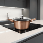 Kozica s pokrovom 30 cm Rose Gold Edition združuje kakovost, funkcionalnost in prestižen videz. Primerna je za vse kuhalne površine, enostavna za čiščenje in opremljena z možnostjo obešanja, kar naredi kozico odlična izbira za vsako moderno kuhinjo.