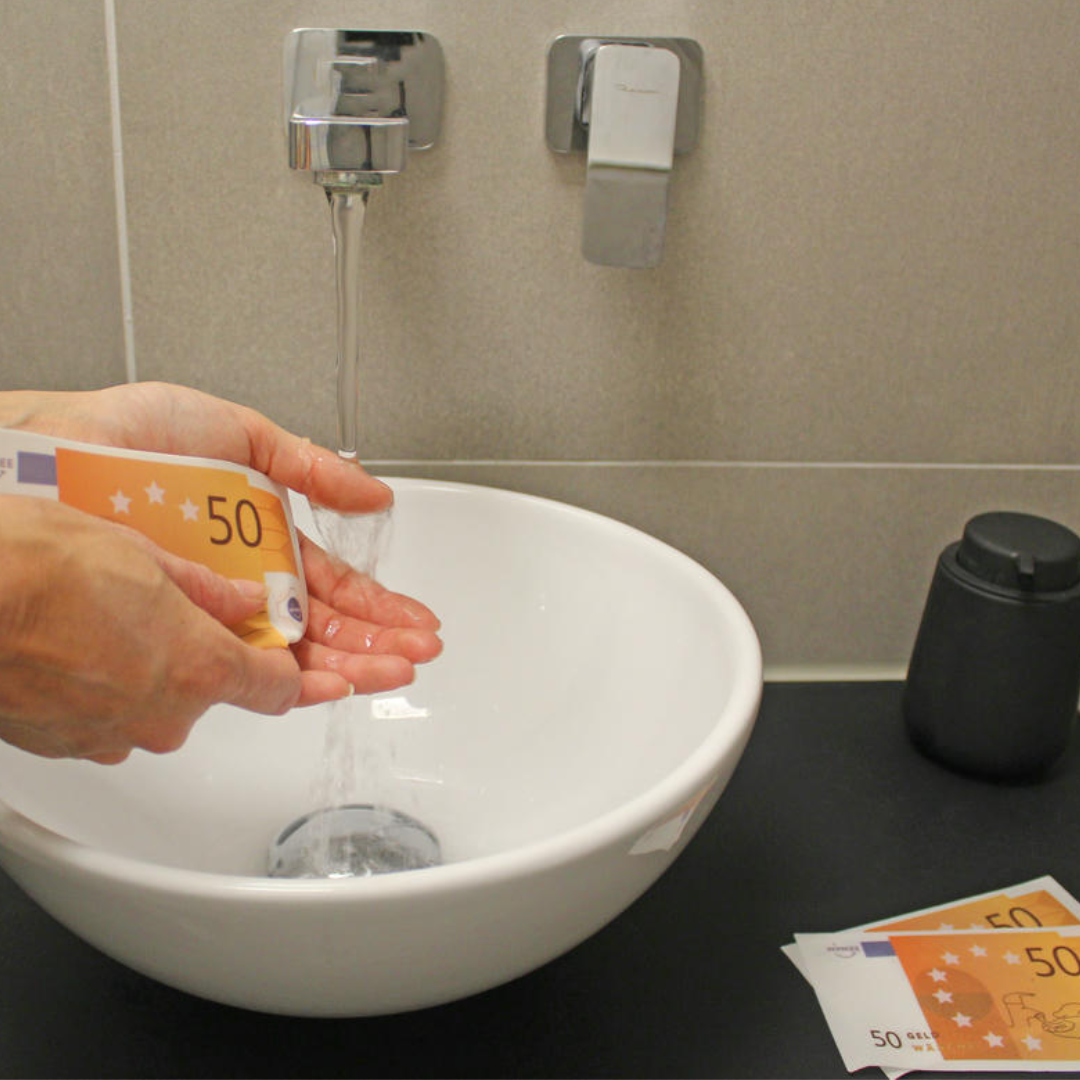 • Zabavno presenečenje – vgrajen ponarejen bankovec se razkrije med uporabo mila