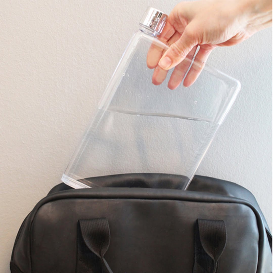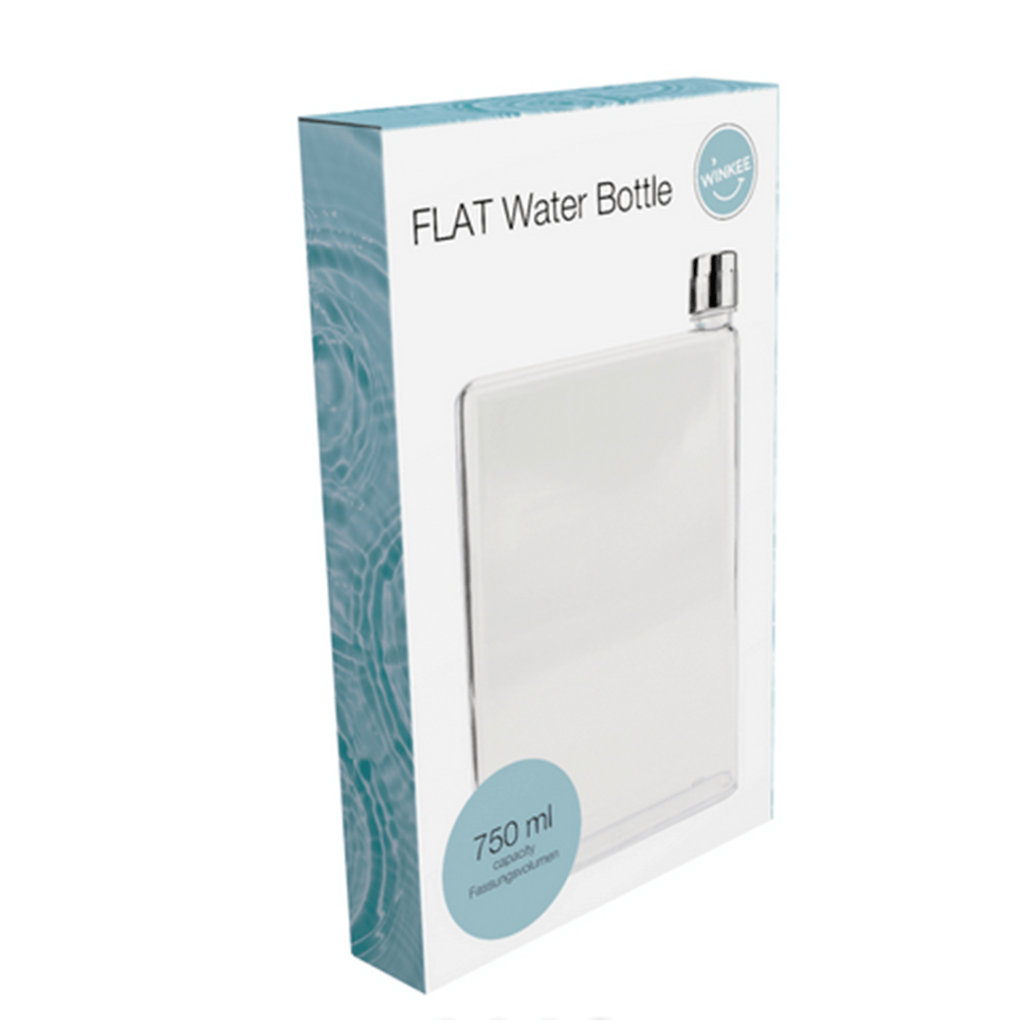 Ploščata steklenica za vodo s prostornino 750 ml je ultra tanka (le 3,5 cm v globino) in primerna za nahrbtnike, aktovke in torbice. Lahka (0,296 kg), elegantna in popolnoma neprepustna za kapljanje. Zavzame malo prostora in je primerna tudi za zelo ozke torbe.