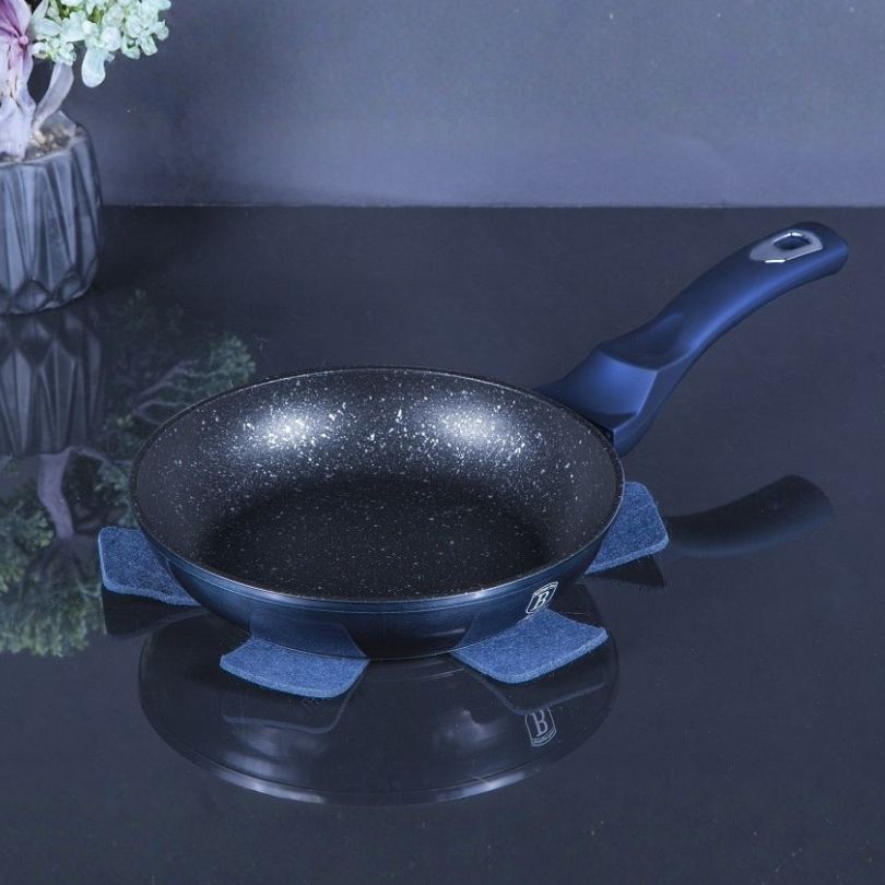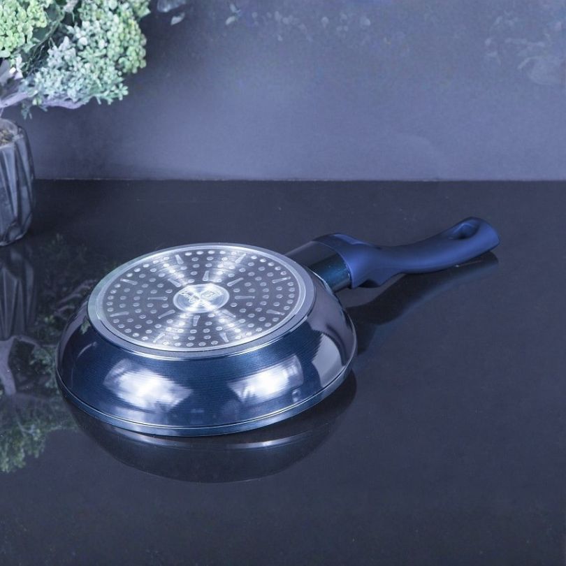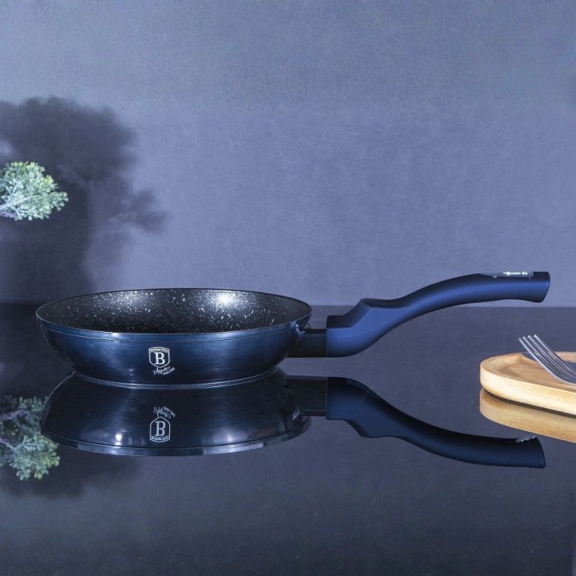 Ponev je opremljena s 3-slojnim marmornim premazom, ki zagotavlja da se hrana ne prijema. Obroke lahko pripravljate z minimalno količino olja ali celo brez maščobe. Kovano aluminijasto telo poskrbi za hitro in enakomerno segrevanje po celotni površini, zato je ponev odlična za vsakodnevno kuhanje, dušenje in cvrtje.