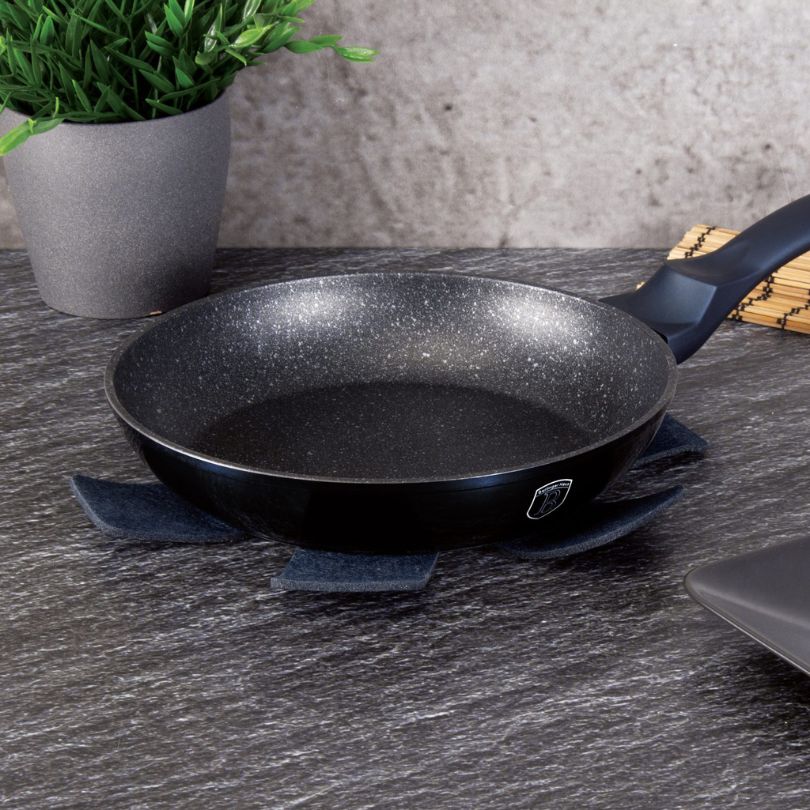 Ponev je opremljena s 3-slojnim marmornim premazom, ki zagotavlja da se hrana ne prijema. Obroke lahko pripravljate z minimalno količino olja ali celo brez maščobe. Kovano aluminijasto telo poskrbi za hitro in enakomerno segrevanje po celotni površini, zato je ponev odlična za vsakodnevno kuhanje, dušenje in cvrtje.
