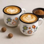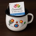 Set 6 emajliranih skodelic z unikatnim cvetličnim vzorcem, ki ga je narisala 6-letna Neža. Vsaka skodelica prinaša toplino, igrivost in kanček otroške domišljije v vaš vsakdan.