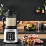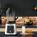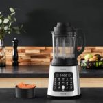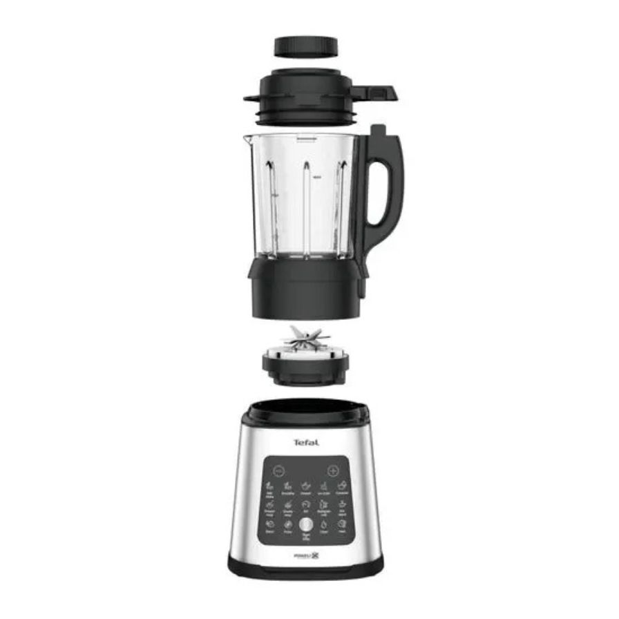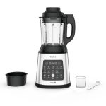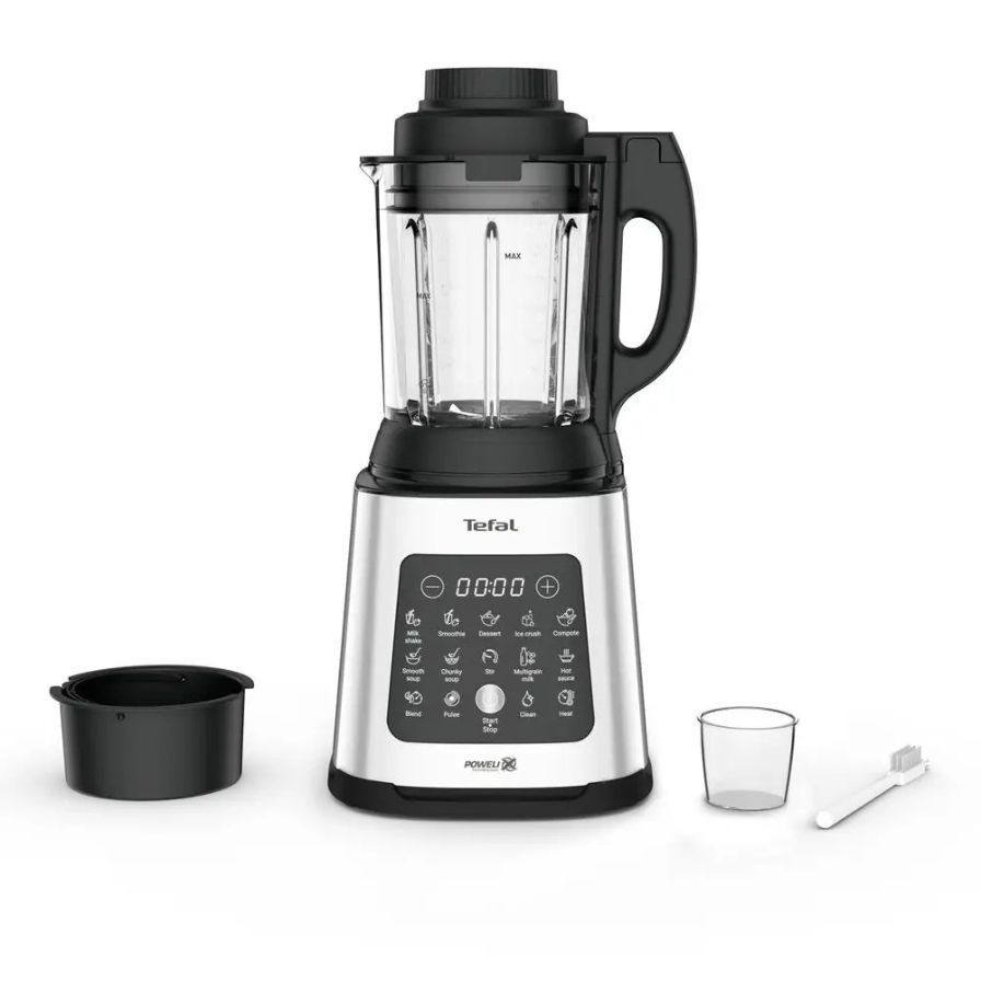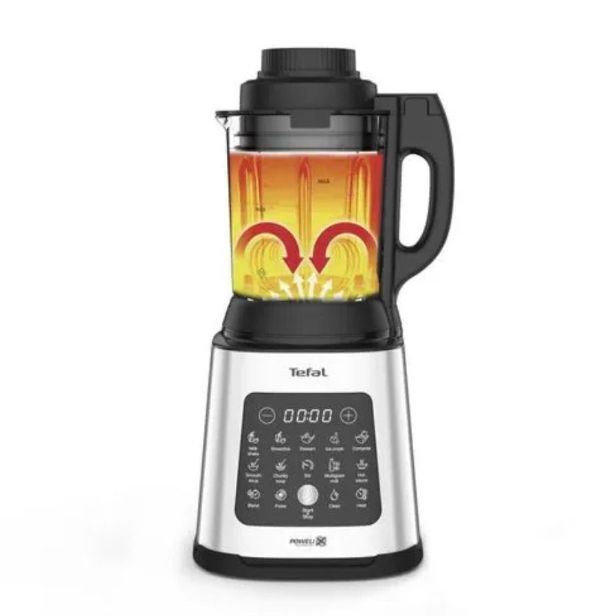 TEFAL Perfectmix Cook je vsestranski mešalnik z močnim 1400 W motorjem in ekskluzivnimi rezili Powelix, ki omogoča pripravo toplih in hladnih jedi z le dvema klikoma. 10 samodejnih programov pokriva vse od ledeno hladnih smutijev do vročih krepkih juh, funkcija kuhanja na pari s posebno košaro pa mešalnik spremeni v zdrav parni kuhalnik za ribe, zelenjavo in morske jedi.
