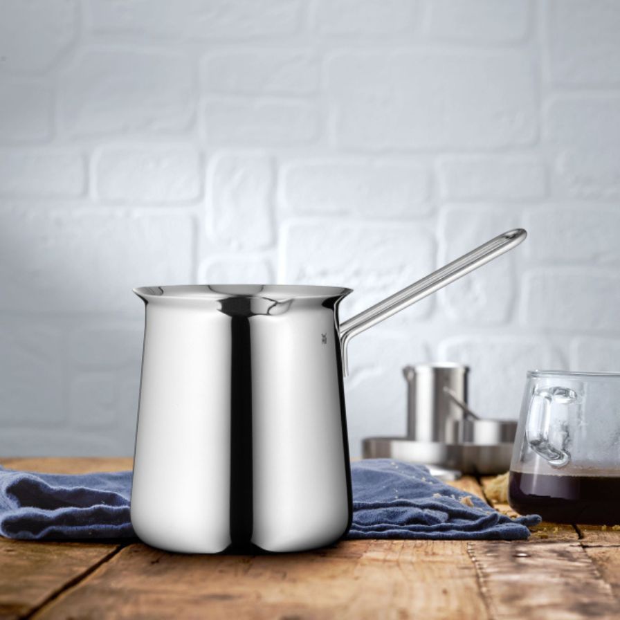 WMF posoda za kavo s prostornino 680 ml iz robustnega Cromargan® nerjavečega jekla 18/10 omogoča tradicionalno pripravo mocha kave na štedilniku. Dolg ročaj zagotavlja varno rokovanje na varni razdalji od vročine, širok nalivni rob pa serviranje brez kapljanja. Primerna za pomivanje v pomivalnem stroju za vsakodnevno udobje.